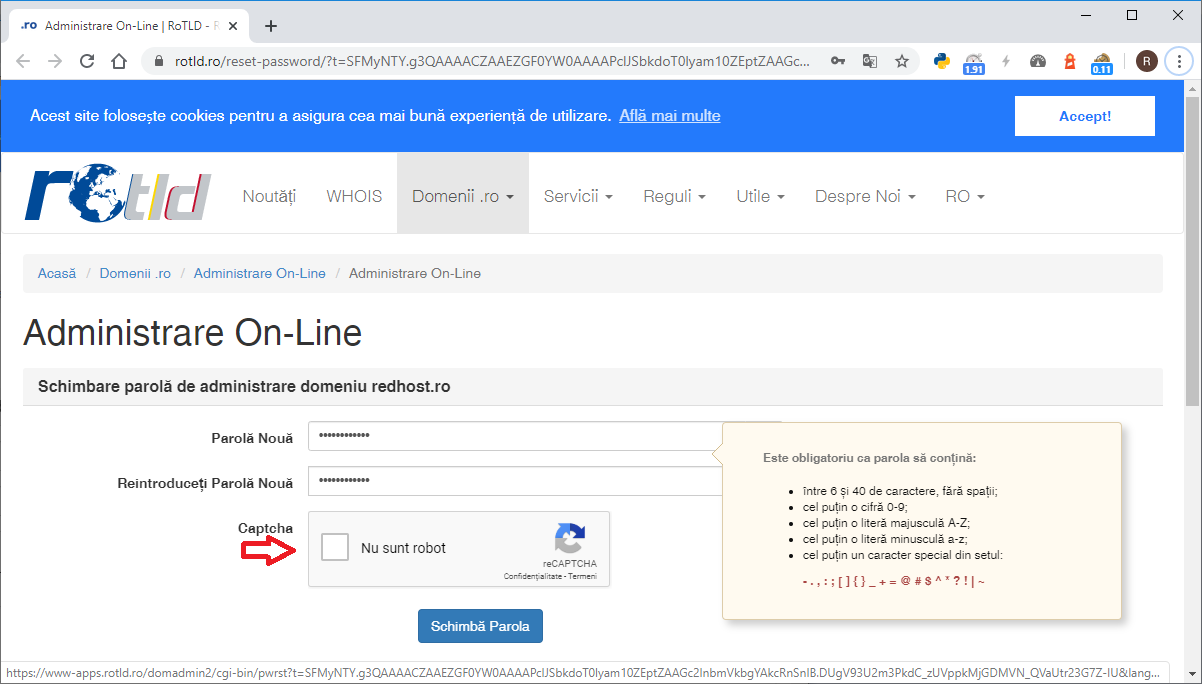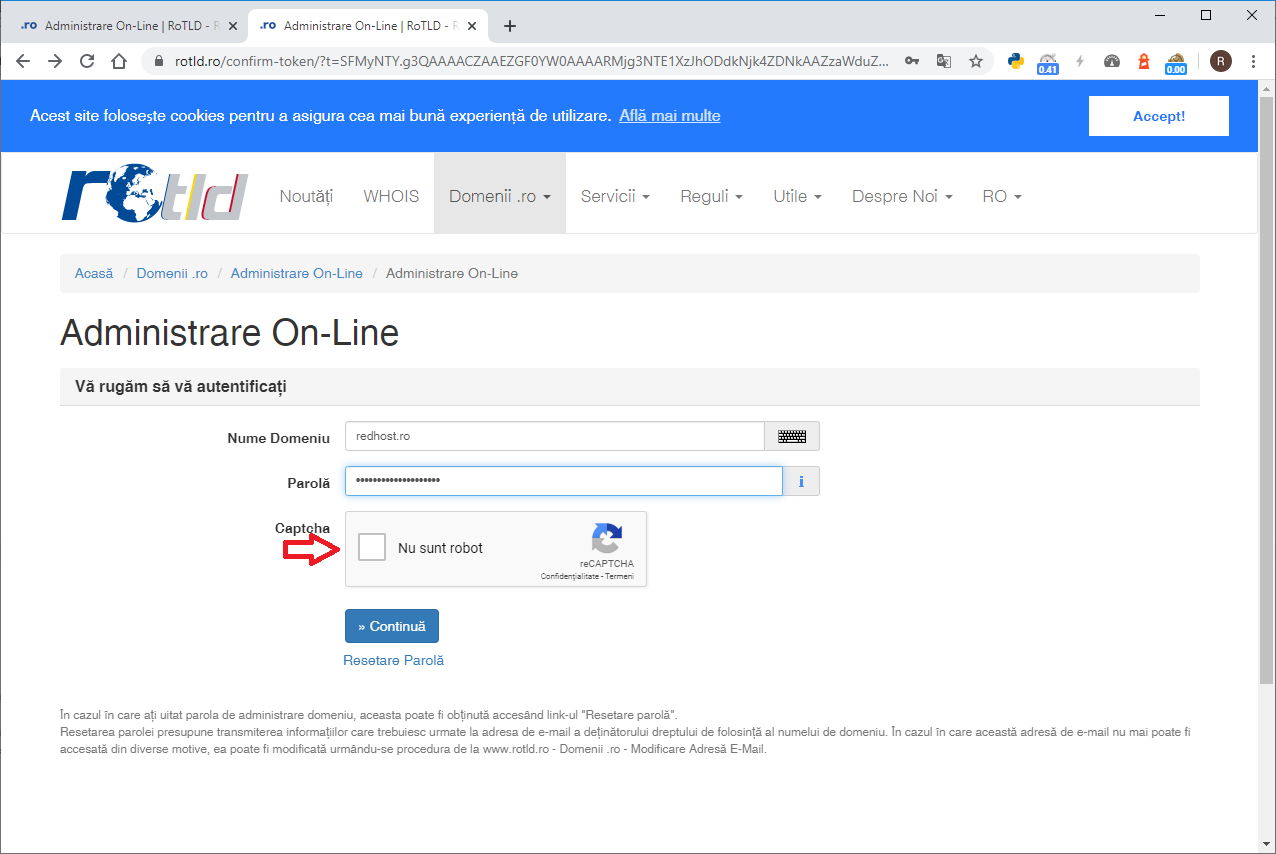 - - tutorialul porneste de la presupunerea ca nu va cunoasteti parola de la ROTLD dar ca aveti acces la adresa de mail asociata domeniului la ROTLD
