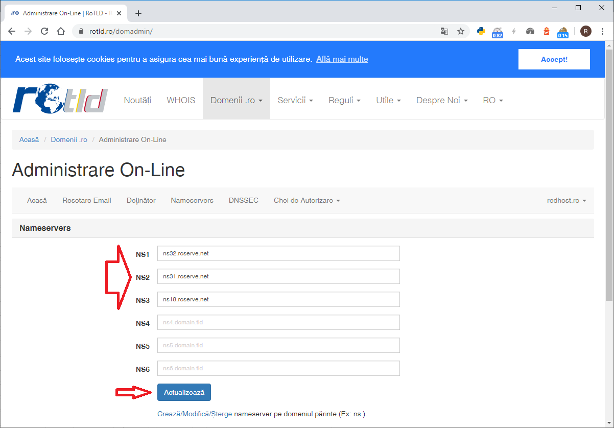Tutorial modificare nameservere domenii .ro la ROTLD